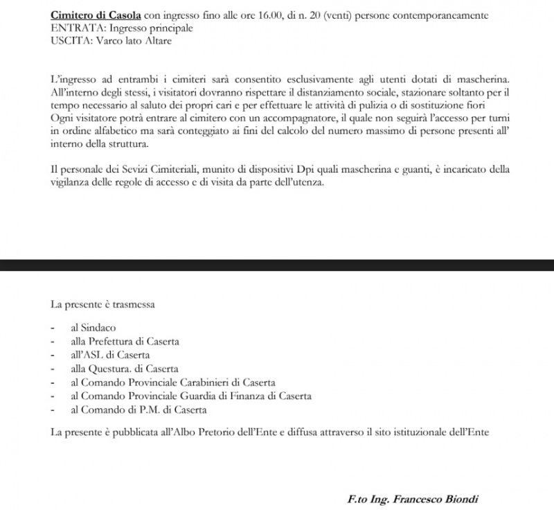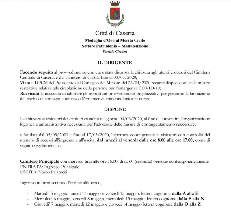 Questa la nota del Comune di Caserta: