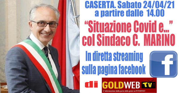 Non perdete domani, 24 aprile, a partire dalle ore 14 in diretta streaming sulla pagina fb 'gold webtv' la trasmissione con il Sindaco di Caserta Carlo Marino. Con lui parleremo della situazione epidemiologica legata al Coronavirus ma anche delle future riaperture e dei lavori che si stanno svolgendo nella città capoluogo di 'Terra di Lavoro'. Vi aspettiamo.