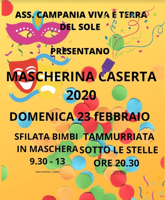 Pubblichiamo questa nota stampa: "Caserta, Mascherina 2020, torna l’atteso evento per bambini. Nell’ambito del carnevale di Caserta che si svolgerà domenica 23 febbraio 2020, si inseriscono due associazioni casertane, Campania Viva e Terra del Sole. Torna infatti, dopo due anni, la sfilata di mascherine giunta alla 5° edizione, nata per volere della giornalista e creatrice di eventi Laura Ferrante. La sfilata - si legge nella nota -, che avrà inizio alle 10 con l’iscrizione dei piccoli partecipanti, prevede una premiazione dei primi classificati divisi in: I premio la mascherina più bella, II la più simpatica, III la più originale. I o le vincitori/vincitrici verranno premiati con una coppa e ci sarà un gadget ed una medaglina per tutti i partecipanti. “Il Carnevale a Caserta non deve morire, con i classici carri che sfileranno, a cura delle associazioni del territorio, non si poteva non inserire la mascherina che negli anni scorsi ha attratto - si legge nella nota - tantissimi bambini. Ringrazio codesta amministrazione per la disponibilità. Facciamo quello che possiamo per non far mancare
