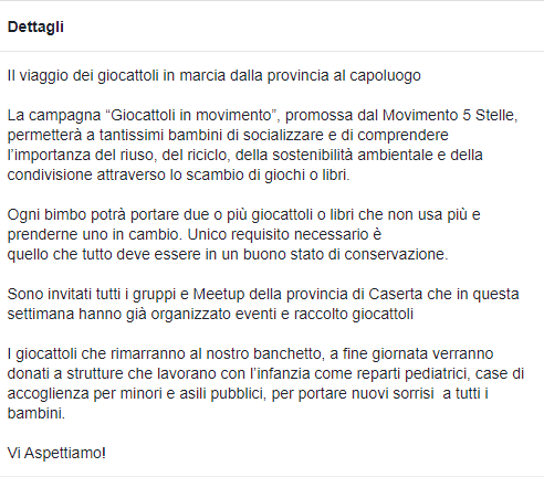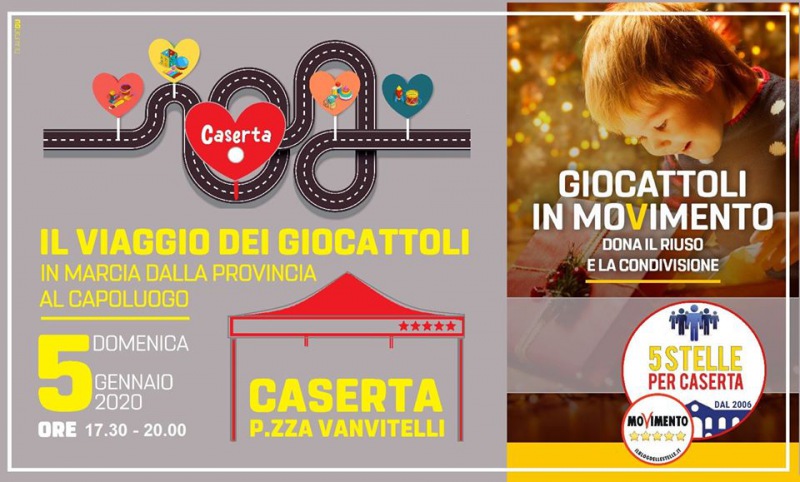 Questi i dettagli dell'evento "Giocattoli In Movimento - Il Viaggio dei Giocattoli" organizzato dal Movimento Cinque Stelle per Caserta: