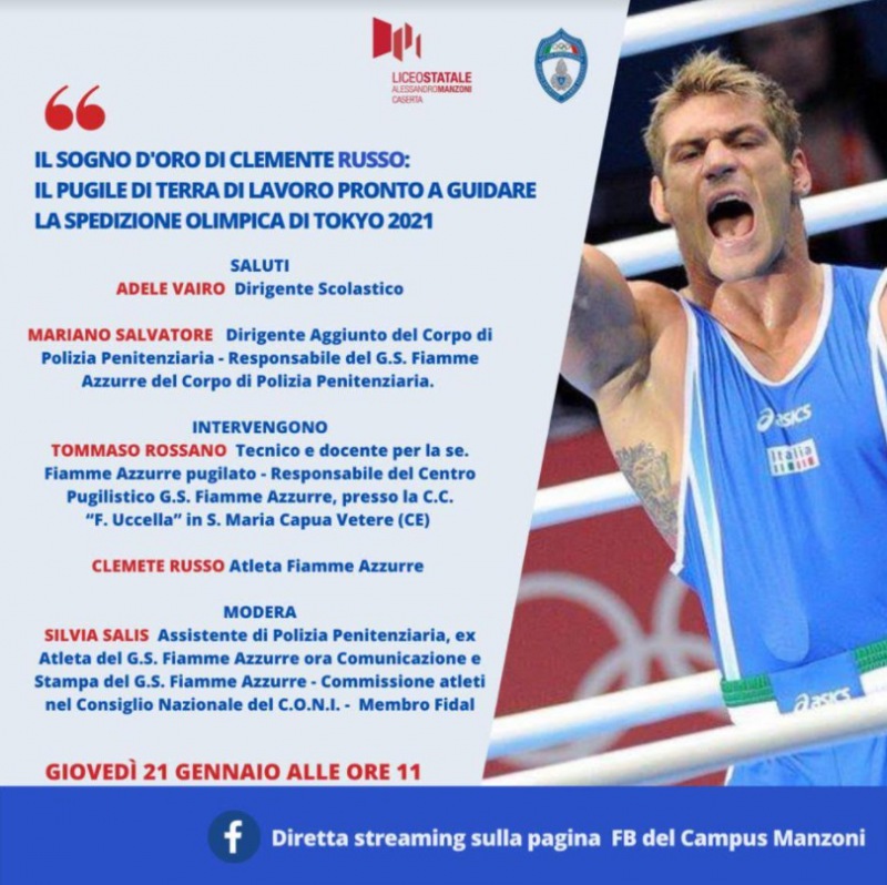 Pubblichiamo COMUNICATO STAMPA Liceo MANZONI: "Due eventi di Sport al Liceo Manzoni: dal Sogno d’oro di Clemente Russo allo Sport come modello di Vita