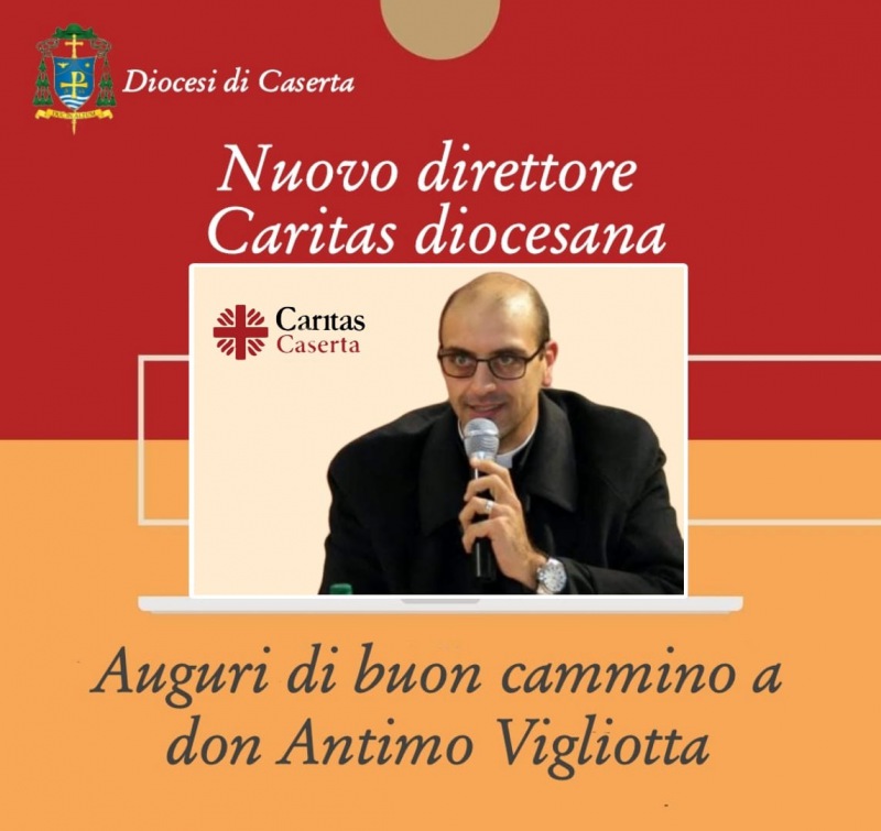 In bocca al lupo e buon lavoro da parte di tutta la redazione di Goldwebtv.it a don Antimo Vigliotta che, da quanto apprendiamo dalla pagina facebook 'Caritas Caserta Organismo Pastorale', e' il nuovo Direttore della Caritas Diocesana di Caserta. Subentra a Don Antonello Giannotti nominato lo scorso gennaio Presidente dell'Istitito Sostentamento Clero.