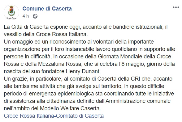Questo quanto pubblicato sulla pagina facebook del Comune di Caserta: