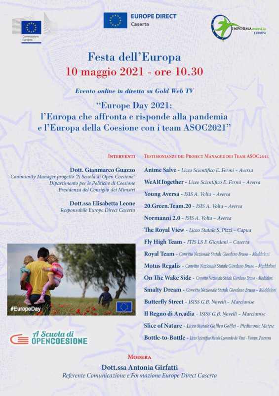 Pubblichiamo nota stampa di Europe Direct Caserta e Informamentis Europa: "ED Caserta 10 maggio 2021 celebra la Festa dell’Europa con “Europe Day 2021: L’Europa che affronta e risponde alla pandemia e l’Europa della Coesione con i Team ASOC2021”
