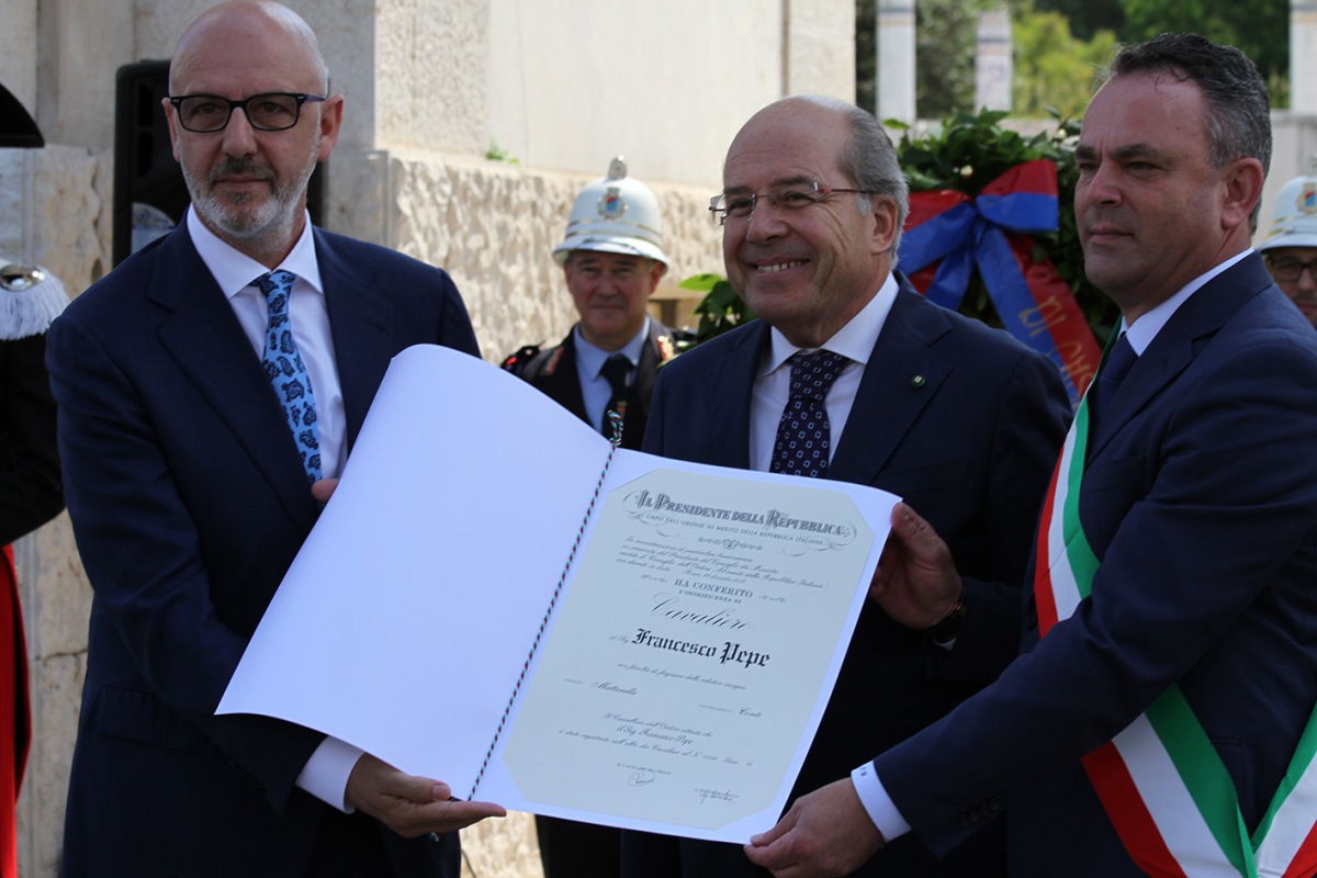 Riceviamo e pubblichiamo questa nota stampa: "Questa mattina, in occasione dei festeggiamenti per il 2 giugno, alla presenza del Prefetto Raffaele Ruberto e dei sindaci delle città della Provincia, Franco Pepe ha ricevuto l'Onorificenza di Cavaliere dell'Ordine al Merito della Repubblica Italiana. Il prestigioso riconoscimento arriva dopo un percorso di sette anni con il progetto Pepe in Grani - si legge nella nota - e una lunga tradizione familiare alle spalle. La sua pizza è stata premiata come la migliore in Italia e nel mondo. La sua idea di prodotto, basata sui legami col territorio e con i produttori locali, ha innescato un processo di ripopolamento e rigenerazione di un piccolo paese dell'Alto Casertano - si legge nella nota -, creando un'impresa che dà lavoro a 41 persone. Rappresentante della Dieta Mediterranea, Franco Pepe ha ideato, con l'aiuto di una nutrizionista, il menu funzionale con l'idea di rendere la pizza un alimento sano e utile alla salute delle persone. "Oggi ho ricevuto il più importante dei riconoscimenti - si legge nella nota -, un'attestazione di stima che non riguarda più solo il mio lavoro, ma anche la mia persona", ha dichiarato Franco Pepe."
