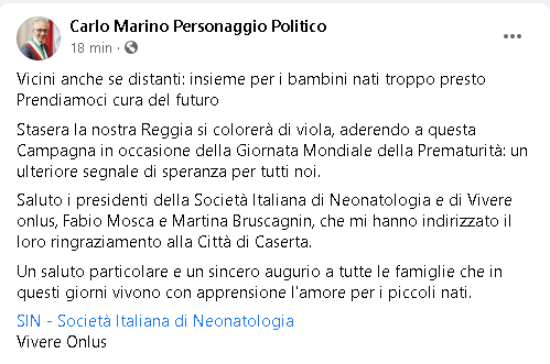 Lo apprendiamo dalla pagina facebook di Carlo Marino, Sindaco di Caserta.