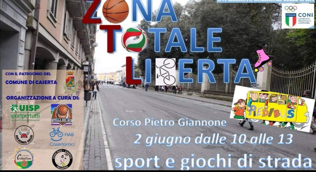 Riceviamo e pubblichiamo nota stampa di questa attività: "ZTL, "Zona a Totale Libertà": è questo il simpatico acronimo scelto dagli organizzatori per intitolare la manifestazione che si terrà domenica 2 giugno, dalle 10 alle 13, su Corso Giannone. L'occasione è la chiusura al traffico che della strada, decisa dall'Amministrazione Comunale oltre che - si legge nella nota - quotidianamente negli orari di ingresso ed uscita delle scuole, anche ogni prima domenica del mese. Ed allora, su sollecitazione di alcuni commercianti del Corso, alcune associazioni sportive e sociali si sono mobilitate per organizzare una mattinata di sport e giochi. La manifestazione, che ha ottenuto il patrocinio morale del Comune di Caserta - si legge nella nota -, vedrà lungo il tratto chiuso al traffico (da Piazza Vanvitelli a via Sant'Antonio) una serie di postazioni presso le quali si potrà cimentarsi a basket con la squadra multietnica di "Stella Del Sud" affiliata UISP, a volley con la "Pallavolo Diaz", o nel pattinaggio con "Hermes Roller" - si legge nella nota -; l'associazione FIAB Casertainbici organizzerà giochi per i bambini in bicicletta, mentre il Comitato Città Viva proporrà il "gioco del Piedibus" ed altri giochi di strada. Una mattinata in cui i cittadini, soprattutto i più piccoli - si legge nella nota -, potranno vedere e godere di una strada sotto una luce completamente diversa dal solito, non piena di auto sfreccianti ma "zona totalmente libera" per un sano divertimento. Tutto il nostro impegno nella virtuosa convinzione che un'altra città è possibile."