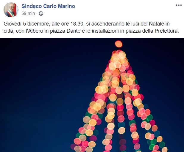 Questo quanto apparso sulla pagina Facebook del Sindaco Carlo Marino: