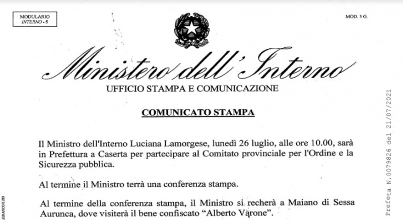Questa parte della nota stampa del Ministero dell'Interno:
