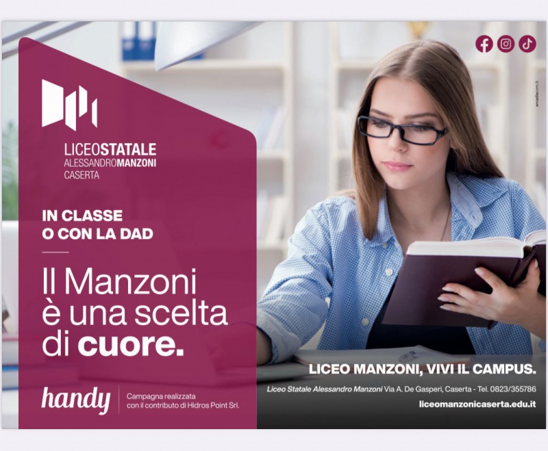 L’anno scolastico 2020/21 sarà sicuramente ricordato dai giovani studenti manzoniani non solo per l’emergenza epidemiologica, ma anche per una grande chance, che aprirà loro una finestra sul mondo del lavoro. Tra qualche settimana prenderà l’avvio- si legge nella nota- il percorso PCTO dal titolo Educare all’imprenditorialità che andrà ad integrare e completare il complesso piano delle attività proposte nel corrente anno scolastico. Referente di consolidata esperienza nel campo dell’alternanza Scuola-Lavoro e che da anni profonde il suo impegno nel settore è la prof.ssa Gilberta Materazzo. Sessanta alunni del Liceo Manzoni parteciperanno a tale percorso PCTO in sinergia con la società Hidros Point s.r.l., al termine del quale quattro studenti particolarmente meritevoli saranno premiati partecipando allo stage formativo con borsa di studio, proiettato a un eventuale inserimento nel mondo del lavoro. I vincitori della borsa di studio, potranno conoscere da vicino e partecipare quotidianamente alle diverse fasi organizzative e gestionali di una grande attività commerciale attiva nel settore del bricolage del gruppo Hidros, ovvero Handy fai da te, ubicata- si legge nel comunicato- a Marcianise e inaugurata meno di due anni fa. Per il Liceo Manzoni è motivo di orgoglio l’essere stato individuato – unico fra i licei casertani – come bacino di studenti destinati ad un’esperienza di grande impatto formativo. «Abbiamo accolto con grande entusiasmo l'iniziativa» - afferma la dott.ssa Adele Vairo, Dirigente Scolastica del Liceo "Manzoni" - «che intende valorizzare la competenza culturale ed operativa dei nostri studenti. La società Hidros Point, alla quale va il nostro ringraziamento, infatti, ha voluto scegliere proprio il Liceo "Manzoni" e ciò rappresenta un importante riconoscimento della qualità della nostra offerta formativa. L'iniziativa- si legge nella nota- consentirà ai nostri studenti di ampliare i loro orizzonti di vita. Un segnale di luce in un momento storico complesso e incerto. Un plauso, quindi, anche alla grande professionalità del team che segue gli studenti in tutto l’iter di Orientamento, sia in ingresso che in uscita ». «Ringrazio la Dirigente Scolastica e i docenti referenti per aver accolto questa nostra volontà di aprirci e vivere il territorio guardando alle sue eccellenze, quindi non potevamo non orientarci verso il Liceo “Manzoni”, in quanto vero e proprio punto di riferimento culturale per Caserta e i comuni limitrofi - dichiara Ciro D’Ambra, legale rappresentante della società Hidros Point s.r.l.. La nostra collaborazione con il Manzoni abbraccerà- si legge nel comunicato- anche alcune iniziative territoriali a cominciare da quelle dedicate all’Orientamento». Manzoniani, in bocca al lupo!"