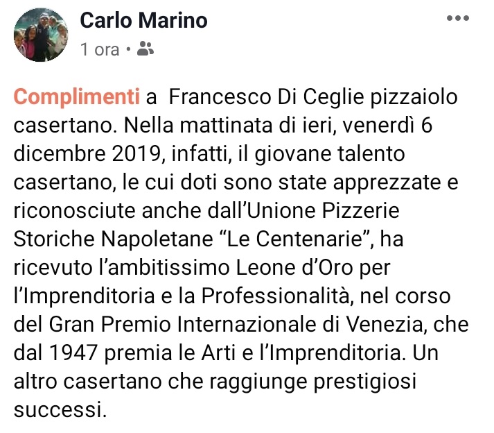Lo apprendiamo dalla bacheca Facebook del Sindaco di Caserta, Carlo Marino.
