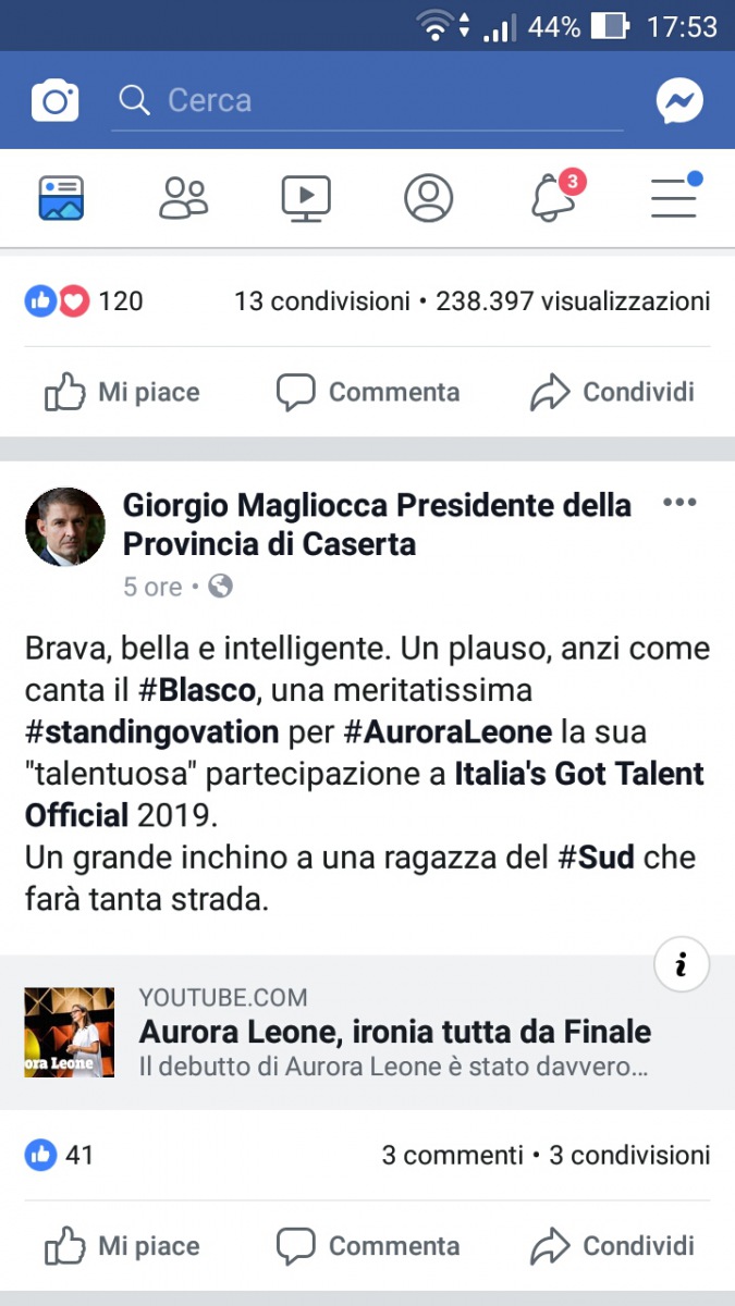 Anche il Presidente della Provincia di Caserta Giorgio Magliocca si è voluto congratulare con la giovane Aurora Leone.