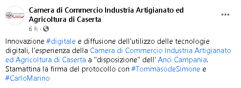 Lo apprendiamo dalla pagina Facebook della Camera di Commercio Industria Artigianato ed Agricoltura di Caserta.