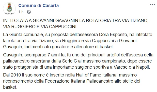 Questo quanto apprendiamo dalla pagina facebook del Comune di Caserta: