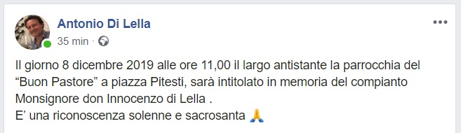 Questo quanto apprendiamo dal Consigliere Comunale Antonio Di Lella