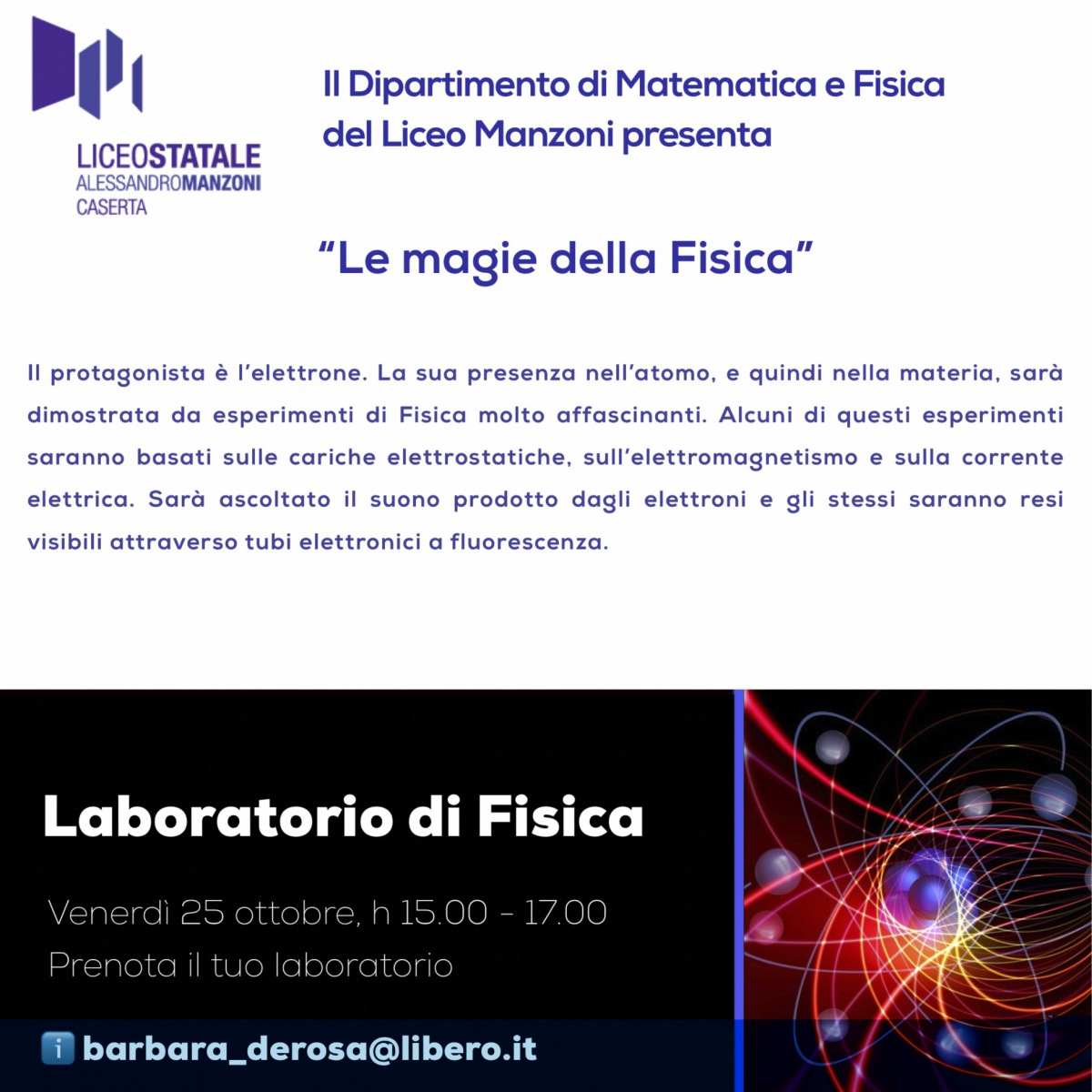 Questo il testo del comunicato inviatoci dal Liceo Manzoni Caserta: “Partono venerdì 25 ottobre i primi Laboratori di orientamento al Liceo “Manzoni” di Caserta, con quattro diverse attività: psicologia, greco, tedesco e fisica.