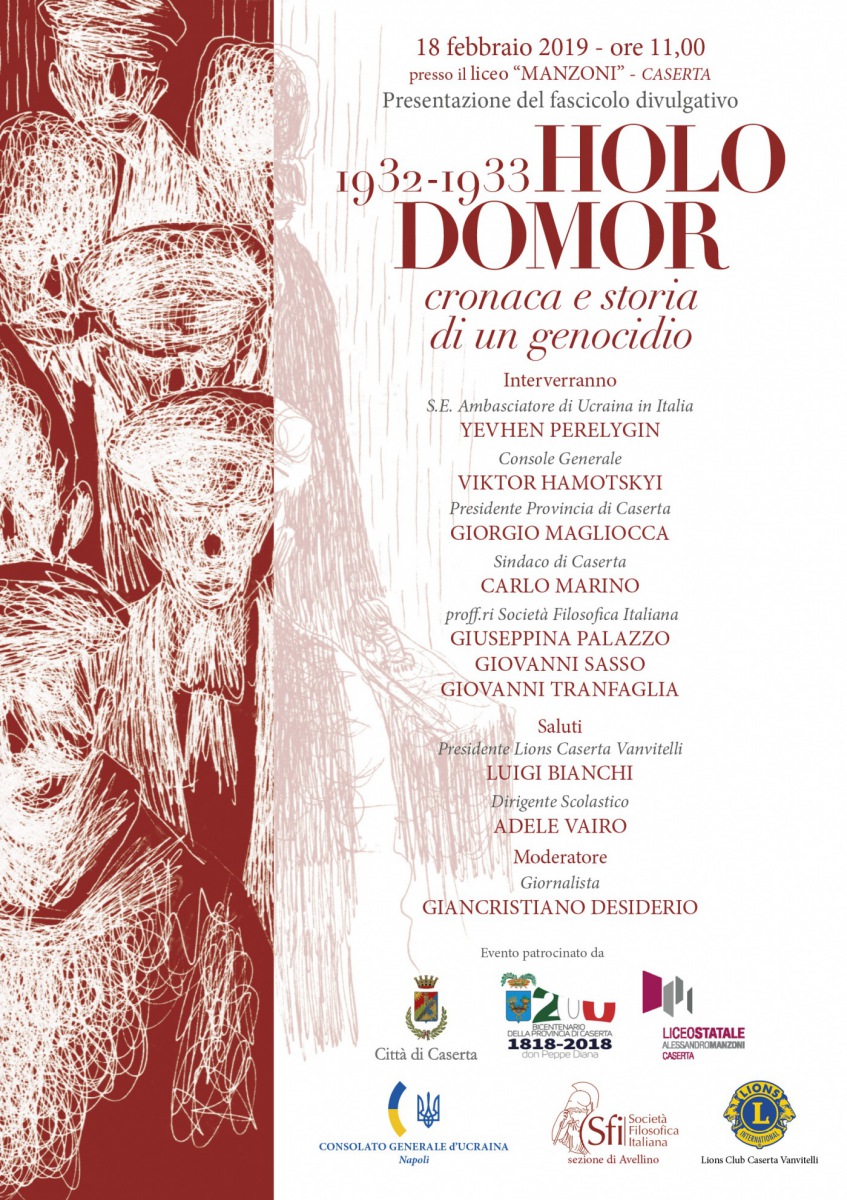 "Il “Lions Club Caserta Vanvitelli”, patrocinato dalla Provincia di Caserta e dal Comune di Caserta, comunica che lunedì 18 febbraio, alle ore 11.00, presso l’aula Magna del Liceo Manzoni si terrà un convegno alla presenza di S.E. Ambasciatore di Ucraina in Italia - Yevhen PERELYGIN e del Console Generale - Viktor HAMOTSKYI. Detto incontro è organizzato dal Club “Lions Caserta Vanvitelli” del Distretto 108ya, III Circoscrizione - Zona 9 e rappresentato dal Presidente Luigi BIANCHI, con i Soci ed il Direttivo al completo.-spiega la nota-L’evento viene realizzato grazie alla piena disponibilità del Dirigente Scolastico del Liceo Adele Vairo, sempre molto attenta al diritto della conoscenza dei suoi studenti, accogliendo con gran entusiasmo presso il proprio Istituto le massime Autorità diplomatiche che rappresentano in Italia l’Ucraina, insieme a rappresentative Autorità territoriali, tra le quali: il Presidente della Provincia di Caserta dott. avv. Giorgio Magliocca; il Sindaco di Caserta l’Avv. Carlo Marino, che interverranno per i saluti e gli auguri al gruppo di lavoro dell’incontro-dibattito con gli studenti del Liceo Manzoni, sul tema: “1932/33 – HOLODOMOR – Cronaca e storia di un genocidio”- prevista la partecipazione del Vice Prefetto Vicario di Caserta dott. Lastella.-si legge nella nota-Il convegno, discusso dagli autorevoli Proff.ri della Società Filosofica Italiana, Giuseppina Palazzo; Giovanni Grasso e Giovanni Tranfaglia e moderato dal giornalista Giancristiano Desiderio, verte su una pagina, forse, più buia della storia dell’Europa del XX secolo, l’intento è contribuire a una migliore conoscenza su cause e sviluppi della “morte per fame” (Holodomor) del popolo ucraino negli anni della collettivizzazione voluta da Stalin. All’epoca per carestia pianificata, deportazione e esecuzione in meno di 7 mesi furono lasciati morire più di 7 milioni ucraini, tra cui molti bambini.-spiega la nota-Già nel 1933, il Console Italiano Gradenigo con la sede a Kharkiv diede ampia testimonianza sulle circostanze e sulle modalità con cui il regime staliniano procurava la morte per fame di milioni di ucraini. Nel caso di Holodomor, il ricordo serve a non ripetere gli errori del passato ed a consolidare - difendere i valori della democrazia, perché “le democrazie senza memoria si suicidano”.-conclude la nota-Affermare la verità, incrementare la conoscenza e diffondere l’idea di giustizia e di legalità sono priorità sempre più urgenti e richiedono sforzi collettivi comuni. La parola, quando si fonda sulla verità, è sempre arma potente contro i delitti e soprusi, anche nel mondo odierno. Solo così si riuscirà a rendere l’Europa un luogo migliore, più sicuro anche per le generazioni che seguiranno."