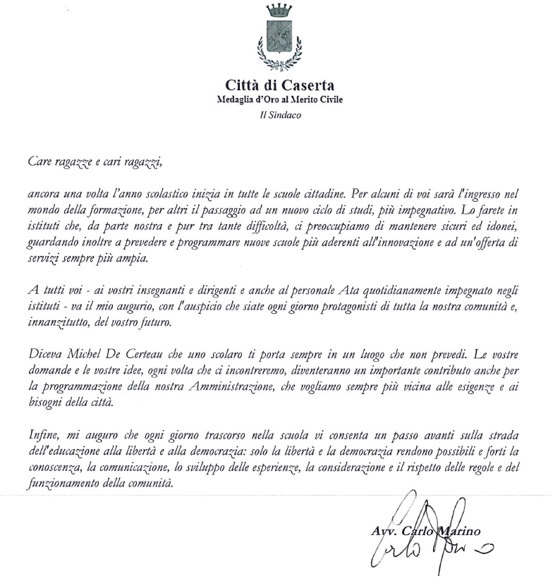 Questo il messaggio del Sindaco Carlo Marino