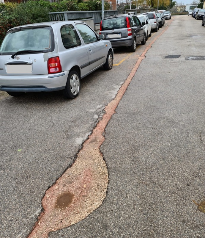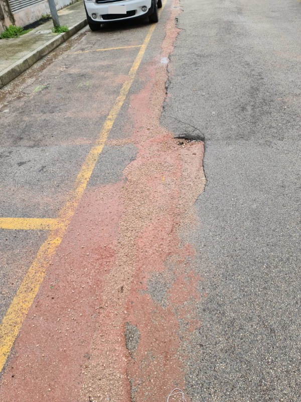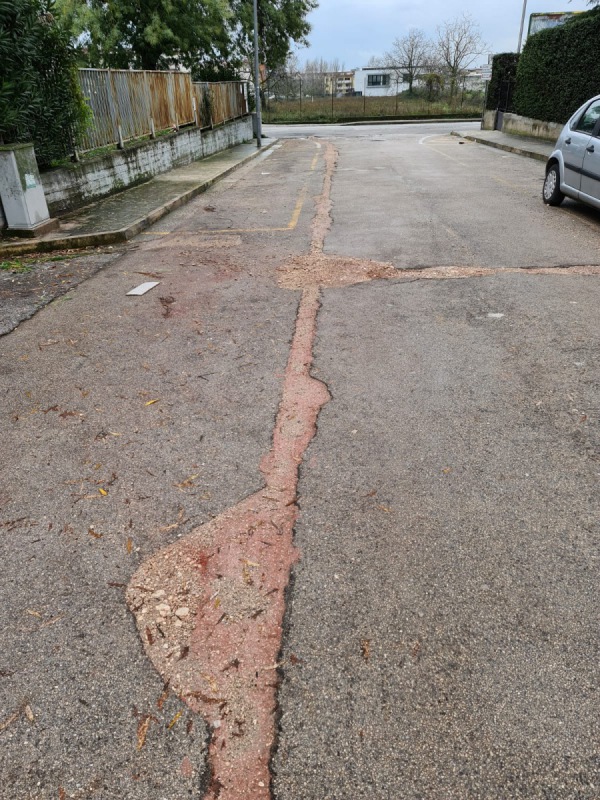 "Cara Redazione vorrei denunciare il degrado in cui versa la strada privata Sebastiano Giaquinto del parco Casabella e Parco degli Oleandri dopo i lavori per la Fibra. Le ruote della macchina hanno subito danni. Grazie."