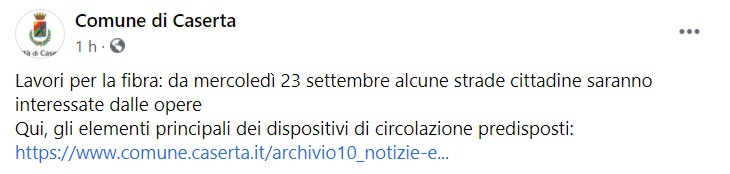 Questo quanto pubblicato sulla pagina facebook del Comune di Caserta: