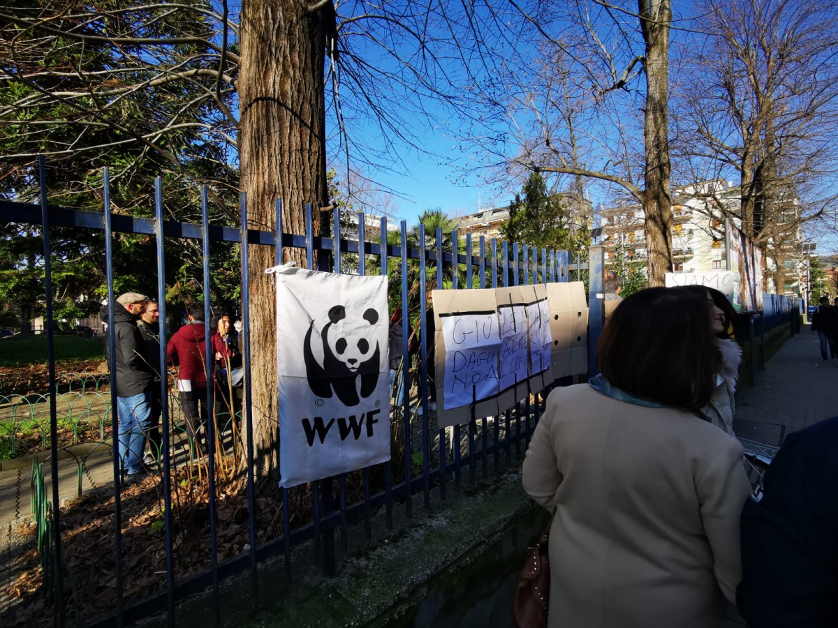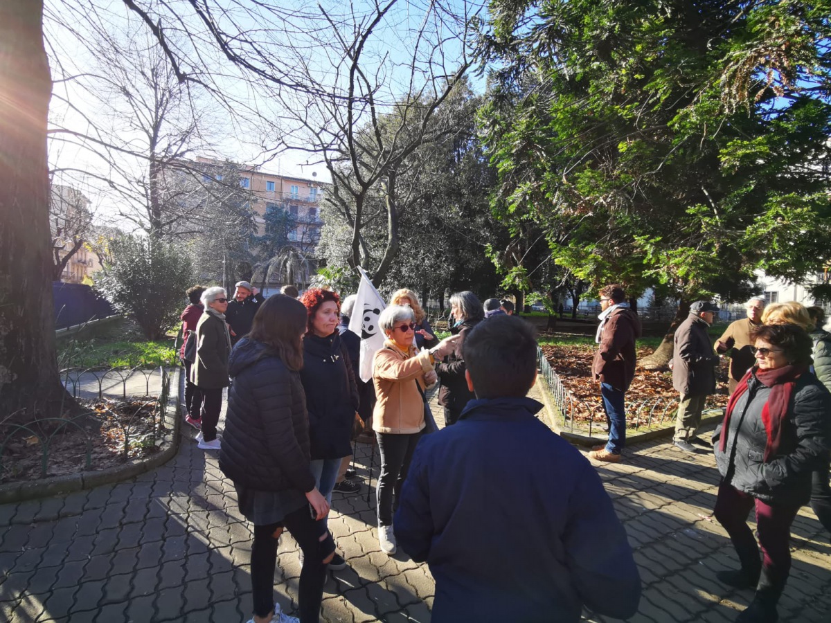 Sit-in per gridare "no" al taglio degli alberi nella villetta Padre Pio, a Caserta, per fare spazio ad una fontana e a delle giostrine. Sono decine e decine le associazioni ritrovatesi questa mattina nella villetta per sensibilizzare l'Amministrazione di Caserta. Wwf, Friday for Future, Legambiente, Uisp, Spazio Donna, Cittadinanzattiva, Scout, Toponomastica femminile, ex Canapificio e tante altre.
