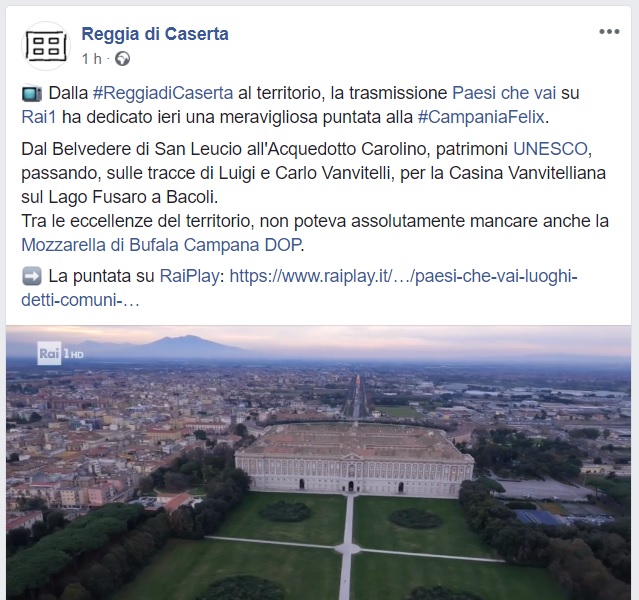 Questo quanto apprendiamo dalla pagina FB della Reggia di Caserta