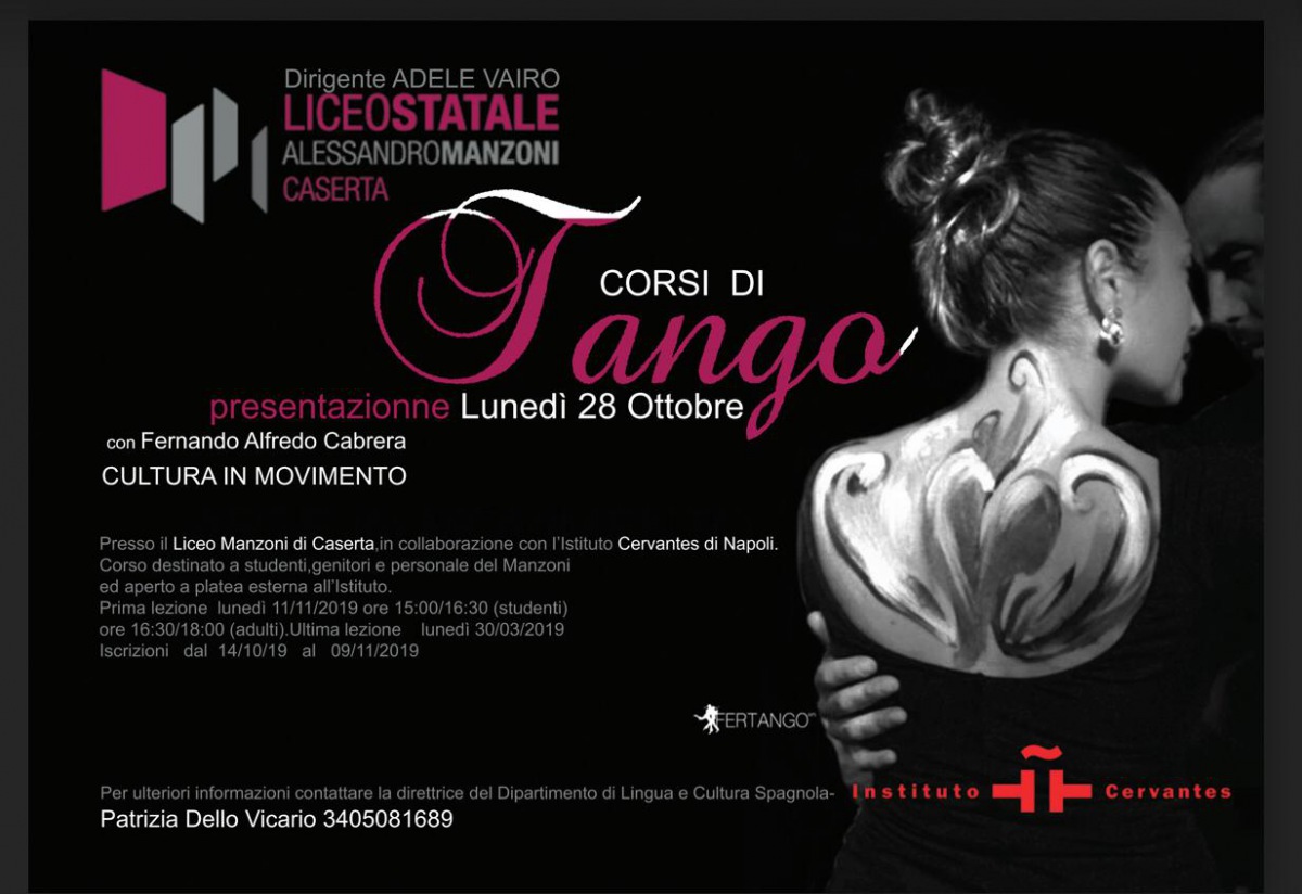 Lunedì 28 ottobre presso il Liceo Manzoni di Caserta, in collaborazione con l'Istituto Cervantes di Napoli, ci sarà la presentazione dei corsi di tango destinati a studenti, genitori e personale dell'istituto.