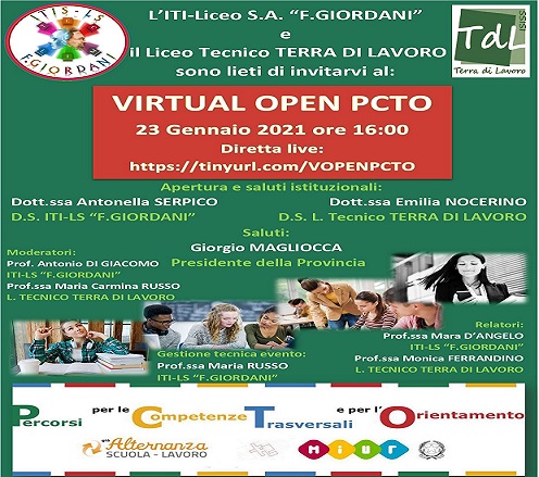 Gli Istituti Scolastici “Terra di Lavoro” e “F. Giordani di Caserta, sabato pomeriggio alle 16.00 saranno uniti in un gemellaggio culturale per sottolineare i vantaggi dei percorsi di “Alternanza Scuola Lavoro” - si legge nella nota - sul piano strategico nel breve e lungo termine e di come tali attività contribuiscano ad avvicinare il mondo della scuola alla realtà economico-produttiva, ai fabbisogni di professionalità e competenze del mercato e del mondo del lavoro. Negli Istituti tecnici i percorsi per le competenze trasversali e l’orientamento sono una realtà didattica acclarata e altamente sperimentata - si legge nella nota - che si coniuga in perfetta sintonia con la solida preparazione di base offerta. Queste scuole sono sempre all’avanguardia, dotate di laboratori super-tecnologici, si inseriscono e si integrano perfettamente con le richieste del mondo del lavoro, orientando gli studenti verso scelte future valide e al passo con il continuo evolversi dei tempi - si legge nella nota - e delle nuove tecnologie. Soprattutto oggi, con la didattica a distanza, sono riuscite ad offrire percorsi a distanza promuovendo percorsi PCTO in smart working. I diplomati tecnici, grazie alla preparazione specifica sia culturale che da professionista, oltre a potersi iscrivere a qualunque percorso universitario trovano facilmente occupazione presso studi professionali, banche, potranno svolgere attività nel settore turistico, sportivo, avranno maggiore facilità nella preparazione di concorsi pubblici, nel mondo digitale, del web - si legge nella nota -, tecnologico, delle e-commerce, digital media manager. Le esperienze di PCTO permettono di vivere in contatto diretto con il mondo del lavoro, abituano alla didattica del fare affiancata ai contenuti, sviluppano le capacità di lavorare in team di progettare e riprogettare la realtà anche in vista di un futuro sostenibile, contribuiscono nella continua interazione con l’apprendimento delle discipline curricolari allo sviluppo del pensiero critico del Problem solving. Insomma, i percorsi di alternanza, se adeguatamente impostati e realizzati - si legge nella nota -, possono davvero rappresentare un fattore vincente dove le scuole, le strutture ospitanti e gli studenti “vincono” avendo tutto da guadagnare."