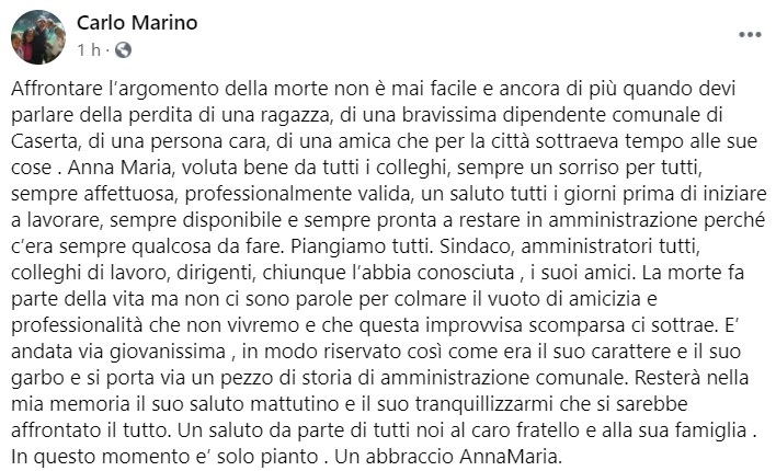 Questo quanto pubblicato dal Sindaco di Caserta Carlo Marino