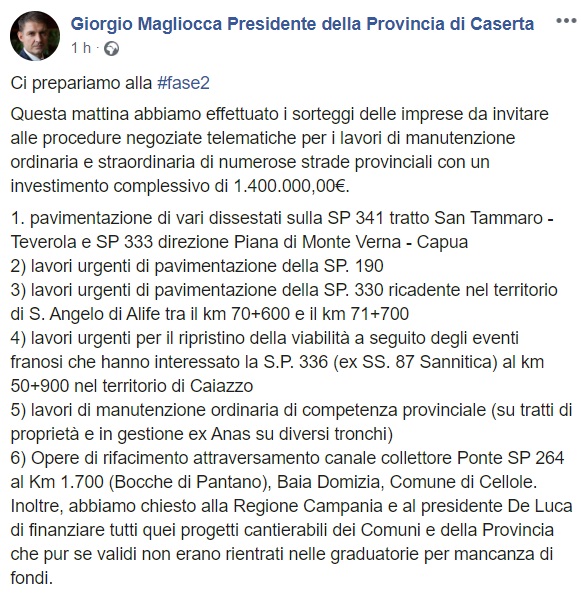 Questo quanto apprendiamo dalla pagina facebook del Pres. Magliocca: