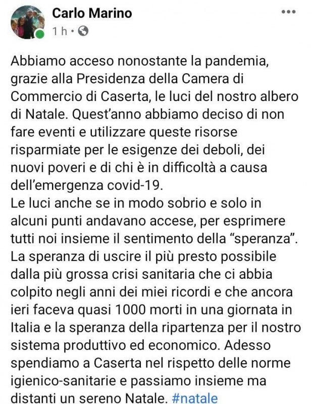 Questo quanto pubblicato sul profilo fb del Sindaco Marino