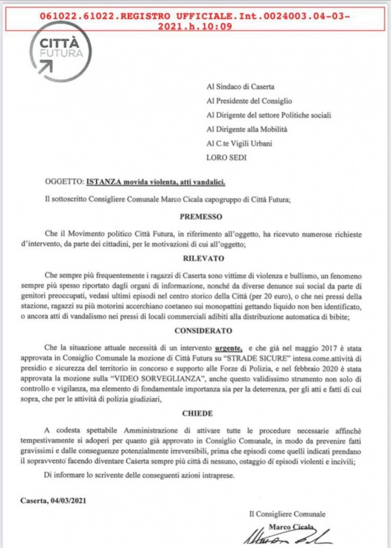 Questa l'istanza presentata dal Movimento Città Futura in merito agli atti vi violenza e bullismo subite da alcuni ragazzi e sulle quali vi sono state diverse segnalazioni