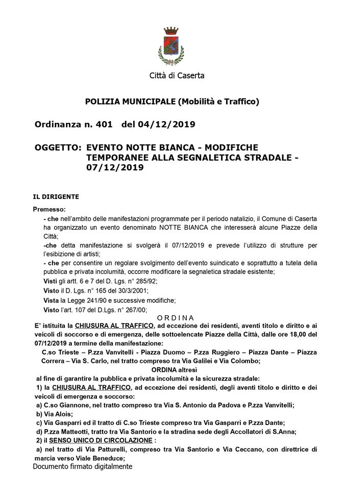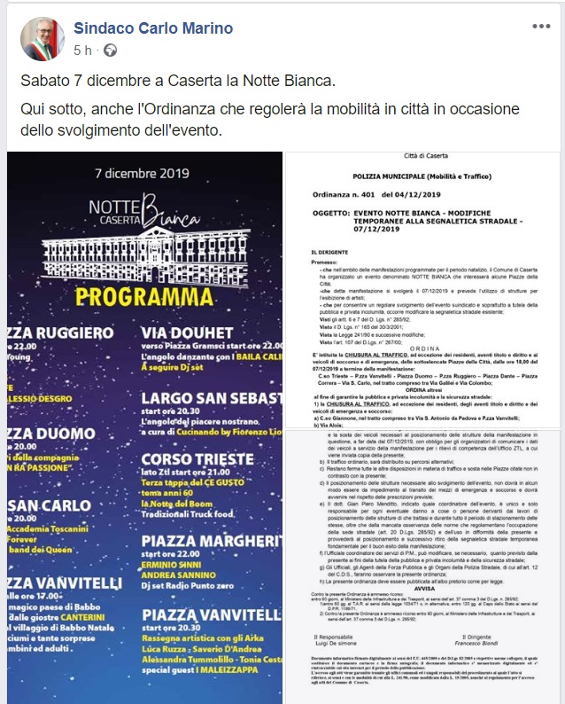Questo quanto apprendiamo dal Sindaco di Caserta Carlo Marino