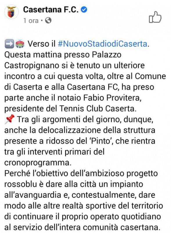Questo quanto pubblicato sulla pagina fb della Casertana