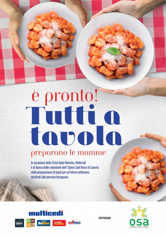 Pubblichiamo questa nota stampa: "Multicedi per il sociale: “Tutti a tavola: preparano le mamme” L’azienda leader della distribuzione in Campania supporterà l’Opera Sant’Anna Caserta in un’azione dedicata a chi non ha da mangiare