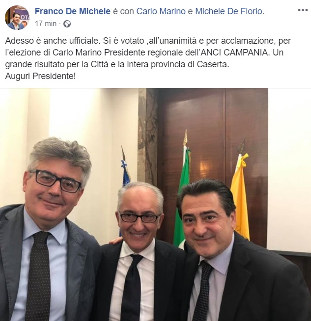 Questo quanto pubblicato su facebook dal Vice Sindaco di Caserta, Franco De Michele: