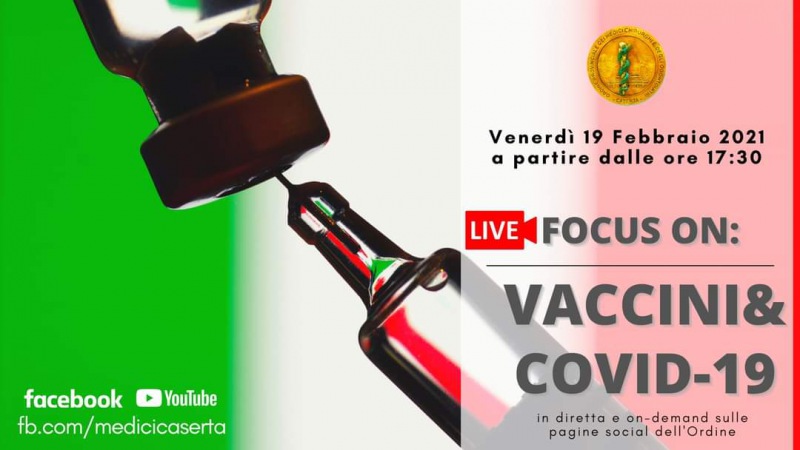 Pubblichiamo nota Ufficio Stampa Ordine Provinciale dei Medici - Chirurghi e degli Odontoiatri di Caserta: "WEBINAR “VACCINI & COVID 19” VENERDI’ 19 FEBBRAIO ORE 17,30 PAGINA FACEBOOK ORDINE MEDICI CASERTA
