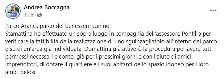 Questo quanto apprendiamo dalla pagina fb del Capogruppo PD Consiglio Comunale Caserta Boccagna: "Parco Aranci, parco del benessere canino: Stamattina ho effettuato un sopralluogo in compagnia dell'assessore Pontillo per verificare la fattibilità della realizzazione di uno sguinzagliatoio all'interno del parco - si legge nella nota - e su di un'area già individuata. Domattina già attiverò la procedura per avere tutti i permessi necessari e conto, già per i prossimi giorni e con l'aiuto di amici imprenditori, di dotare il quartiere e i suoi abitanti dello spazio idoneo per i loro amici pelosi."