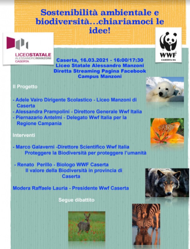 Pubblichiamo questa nota stampa del WWF Caserta: "Sostenibilità ambientale e biodiversità...chiariamoci le idee! Caserta - 16.03.2021 - ore 16:00 indiretta Streaming Pagina Facebook Campus Manzoni. Domani l’atteso evento con due massimi esponenti del WWF Italia e ancora una volta sarà ospitato dal Liceo Manzoni di Caserta, in streaming - si legge nella nota -, sulla sua Piattaforma Facebook. Le dichiarazioni dei relatori: Dichiara Adele Vairo - DS Liceo Manzoni Caserta: Il Liceo Manzoni, in questi anni, ha ampliato la propria responsabilità educativa a nuovi ambiti trasversali, l’autonomia scolastica ha posto le basi per un diverso modo di relazionarsi con il territorio e con le realtà istituzionali e professionali: la partnership con il Wwf ne è l’esempio. Il mio staff ha lavorato alacremente per attivare progetti educativi sull’ambiente, la sostenibilità e la cittadinanza globale. Grazie ai suddetti percorsi il Liceo Manzoni ha raggiunto livelli di eccellenza anche nell’ambito della sostenibilità ambientale. Infatti, grazie ai continui confronti con il Panda team di Caserta, abbiamo attivato percorsi di esplorazione emotiva e culturale e di acquisizione di consapevolezza rispetto ai temi della sostenibilità - si legge nella nota -, un percorso legato alla protezione dell’ambiente e alla cura della casa comune. Dichiara Alessandra Prampolini - Direttore Generale del WWF Italia: Siamo ad un bivio fondamentale in cui istituzioni, aziende e singoli cittadini sono chiamati a fare scelte determinanti: da queste scelte dipenderà il nostro benessere, la nostra salute, la nostra sicurezza. Le nostre scelte energetiche, la sostenibilità delle nostre produzioni, la responsabilità delle aziende e dei consumatori sono gli elementi su cui si costruisce il domani da cui dipende se il nostro pianeta sarà una casa solida, sicura e confortevole o un edificio pericolante e insicuro. Non c’è più tempo per rinvii, dilazioni, incertezze - si legge nella nota -: questo è il tempo della determinazione per fermare la curva del declino della biodiversità che ci racconta di una Terra sempre più povera di vita. Il WWF vuole essere protagonista nella costruzione di un mondo nuovo in cui responsabilità e sostenibilità sono regole e non eccezioni della politica, dell’economia e della nostra quotidianità. Dichiara Marco Galaverni - Direttore scientifico del WWF Italia: Dalla biodiversità – si apprende dell’ultimo Living Planet Report – dipende la sopravvivenza della nostra specie sul pianeta. Il 21 per cento dell’ossigeno che respiriamo è dovuto all’azione di piante e alghe. Buona parte dell’acqua potabile che beviamo, similmente, viene raccolta e filtrata dagli ecosistemi forestali. E poi il cibo: il declino della fauna selvatica influisce direttamente sulla nutrizione e sulla sicurezza alimentare di miliardi di persone. Difendere gli habitat non serve dunque solo a salvare gli orsi polari e i loro cuccioli, ma noi stessi. Dichiara Renato Perillo - Biologo WWF Caserta: in 50 km in linea d’aria si possono osservare i delfini giocare nel mare del litorale Domitio ed il lupo correre tra i faggi secolari del Matese. Nonostante sia una delle provincie italiane a più alta densità di popolazione ed afflitta da annose problematiche legate ai rifiuti, Terra di Lavoro ospita ancora ambienti di notevole pregio, dalle prateria di alta montagna ai boschi ripariali, dalle zone umide litorali ai boschi termofili collinari, con una ricchezza di vita animale e vegetale che va assolutamente studiata, preservata e valorizzata. Una sana gestione del nostro ambiente - si legge nella nota - porta benefici immediati ed a lungo termine, sia per la salute che per le economie di tutti i cittadini."