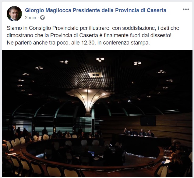 Questo quanto comunicato dal Presidente della Provincia di Caserta Giorgio Magliocca
