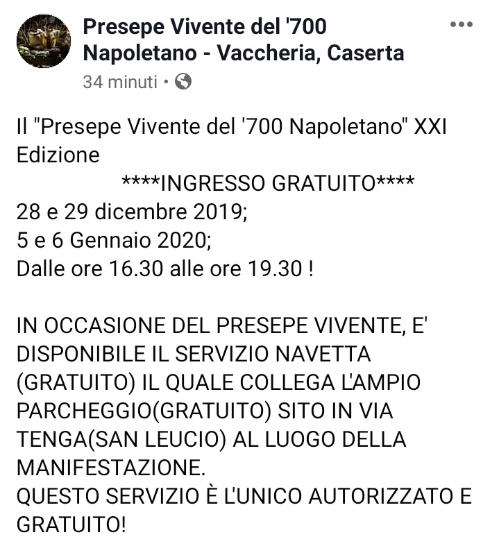 Questo quanto sulla pagina FB Presepe Vivente del '700 Napoletano - Vaccheria, Caserta