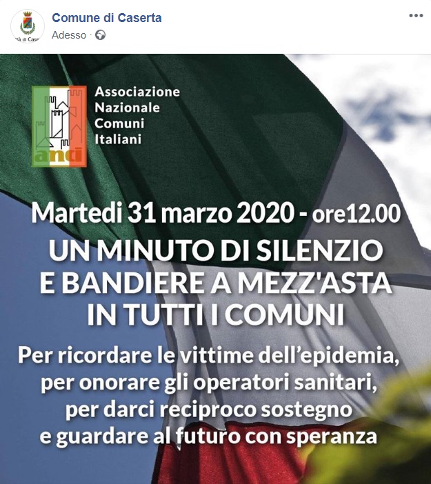 Questo quanto pubblicato sulla pagina facebook del Comune di Caserta: