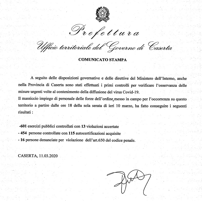 "PRIMI CONTROLLI EFFETTUATI DA FF.OO. PER VERIFICA OSSERVANZA MISURE URGENTI PER CONTENIMENTO DIFFUSIONE VIRUS COVID-19"