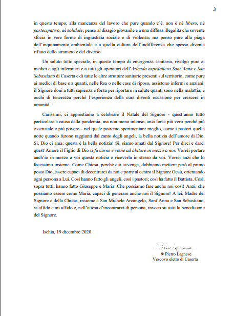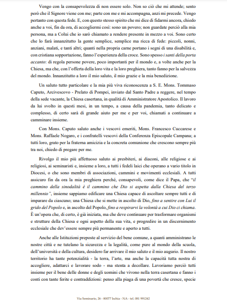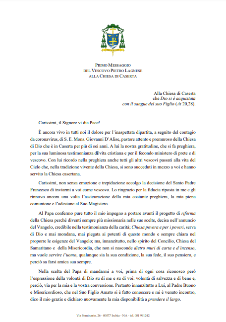 Di seguito, il testo del comunicato del Vescovo di Caserta, Pietro Lagnese, giunto in redazione:.