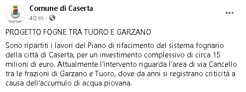 Lo apprendiamo dalla pagina Facebook del Comune di Caserta.