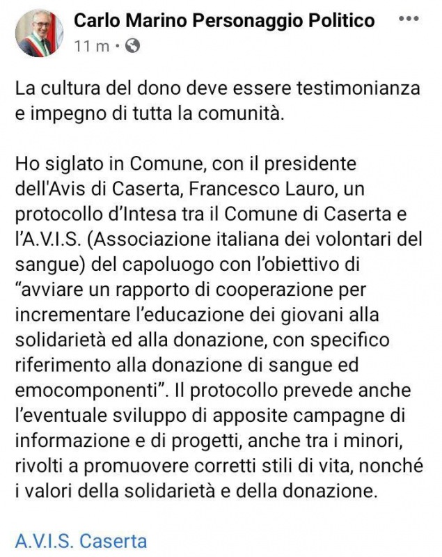 CE. Protocollo d'Intesa Comune-AVIS. Marino: "Rapporto di cooperazione per incrementare l'educazione dei giovani"