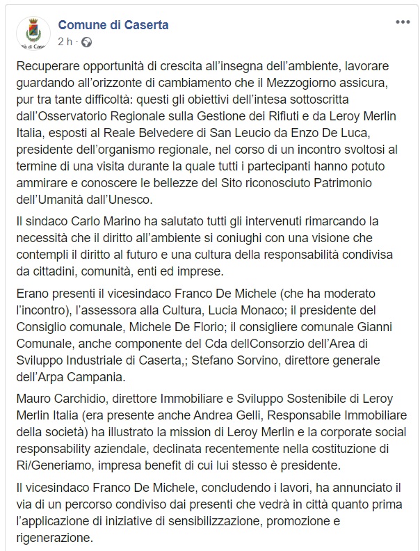 Questo quanto pubblicato dal Comune di Caserta