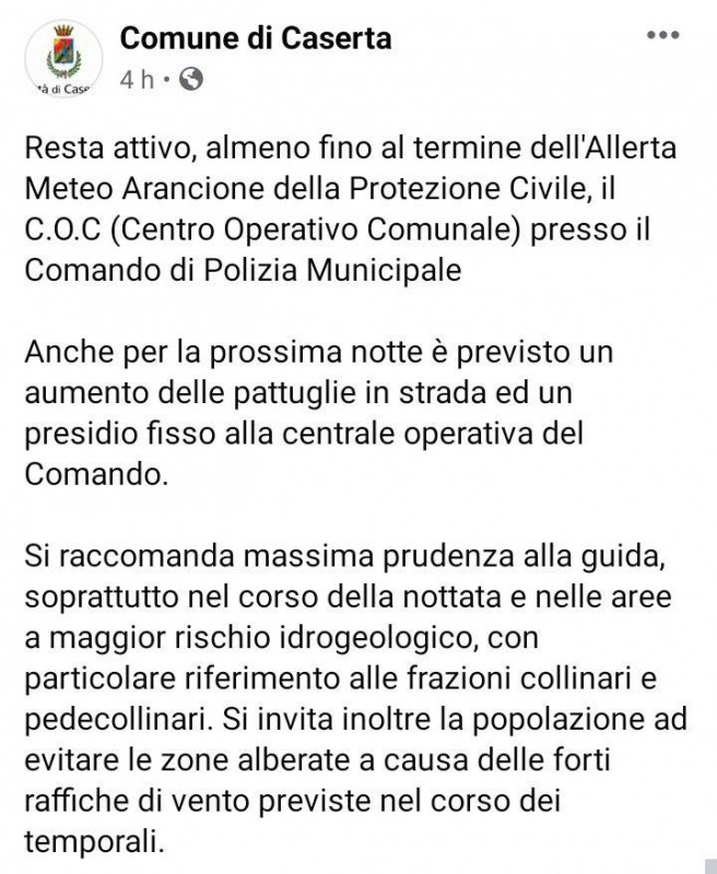 Questo quanto pubblicato dal Comune di Caserta