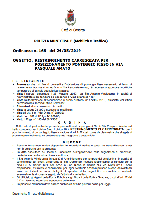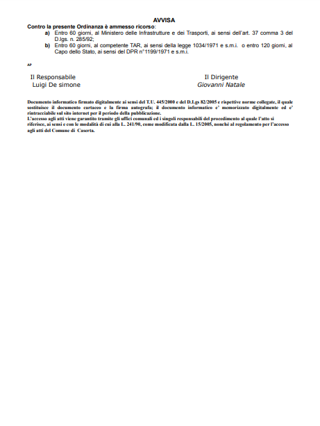 Lo apprendiamo dall'albo pretorio del Comune di Caserta.