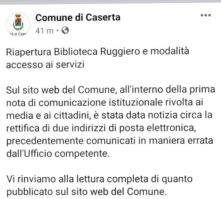Questo quanto pubblicato dal Comune di Caserta. QUI IL LINK per maggiori info